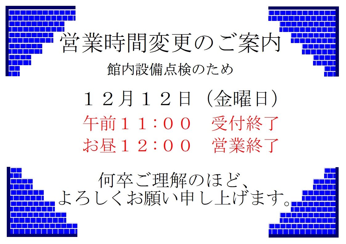 12月12日(金曜日)営業時間変更のご案内